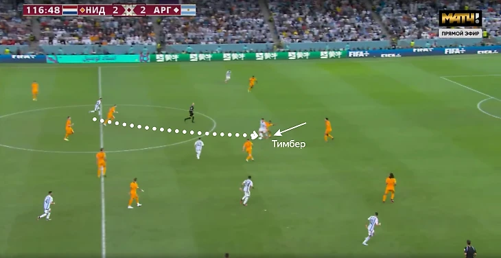 Вот один из эпизодов, когда Юрриен заметил открывание Альвареса. Пас Тимбера ускорил закрепление в финальной трети.