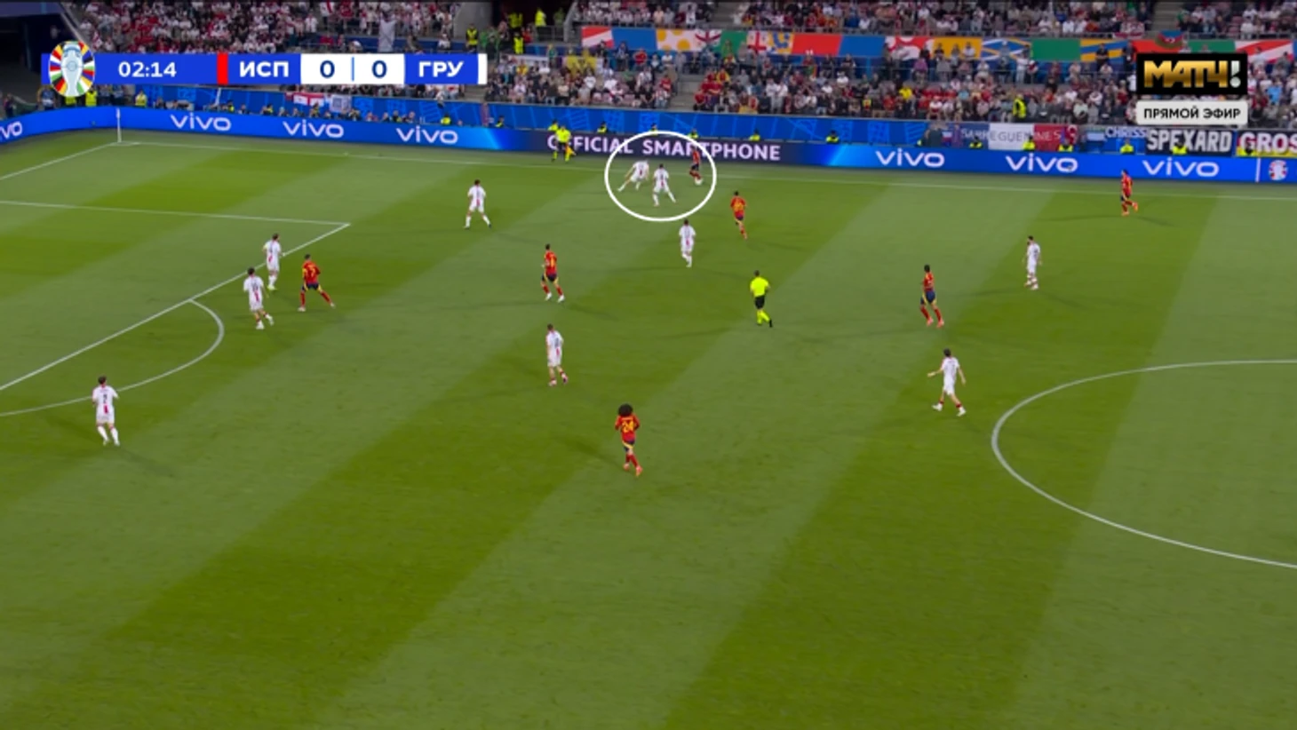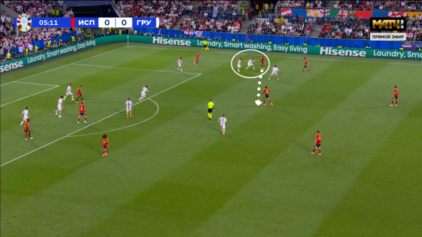 К тому же при таком сценарии появляется пространство в центре, и Испания им непременно пользуется. Против Грузии так в одиночестве остался Родри.