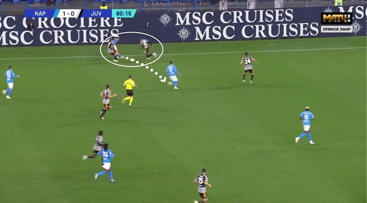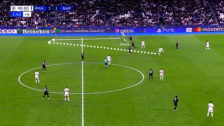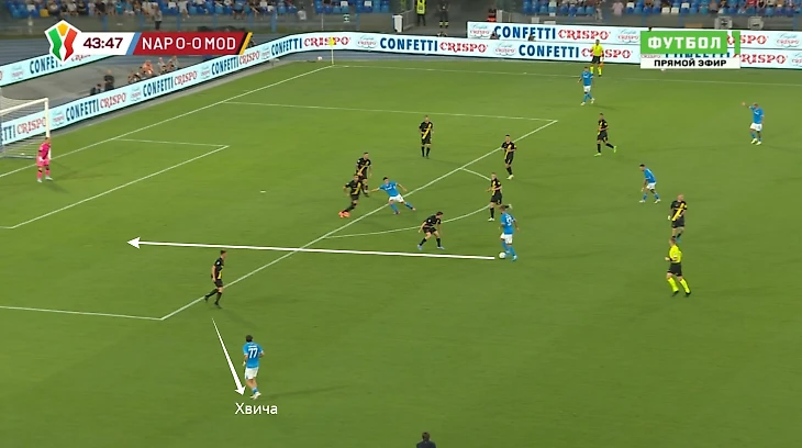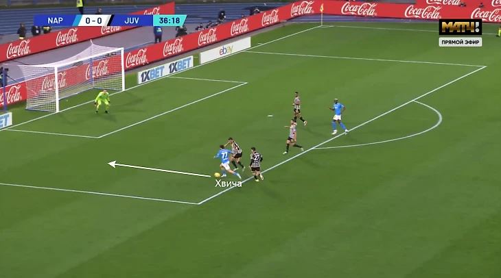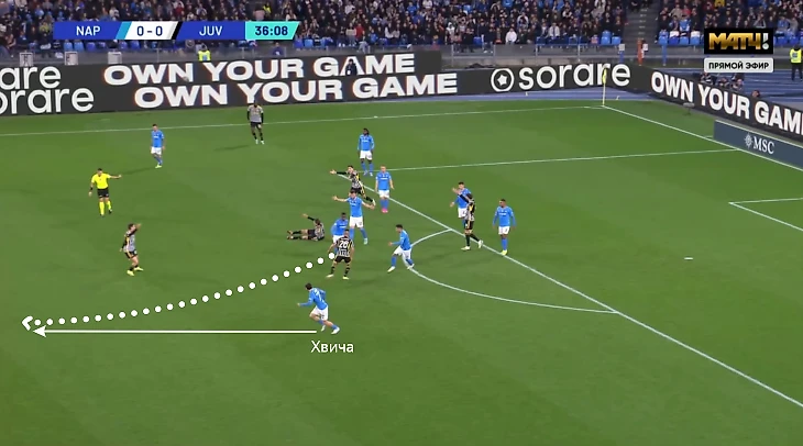 Вот пример из прошлого сезона. Хвича отвлек Тимоти Веа и Федерико Кьезу и вовремя сделал пас на Матиаса Оливеру (пяткой отдал Петру Зелиньскому). «Юве» отобрал мяч только около штрафной после выдергивания Бремера на Осимхена.