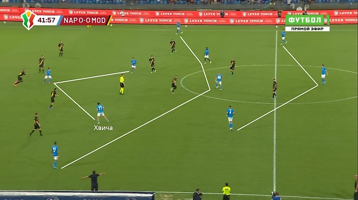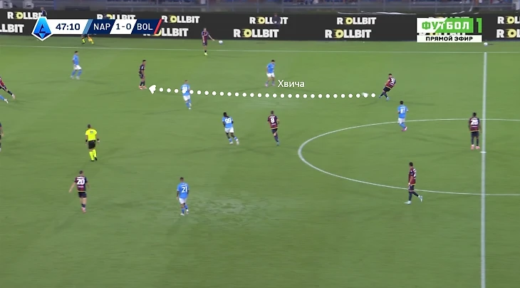 Но сдвоенная игра по грузину давало пространство, куда врывался кто-то из партнеров и оставался без опеки. «Наполи» становился непредсказуемее при владении. Даже если атака не завершалась ударом, Хвича все равно был важен для их организации.