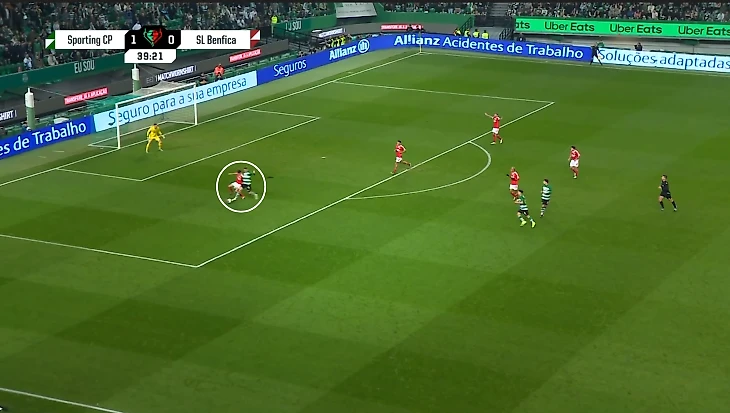 И тут форвард проявляет себя по-разному. При длинных передачах или комбинациях перед штрафной ценится его умение сыграть в одно или два касания. Так «Спортинг» получает дополнительного адресата и не передерживает мяч.