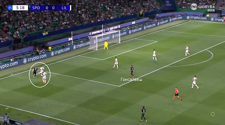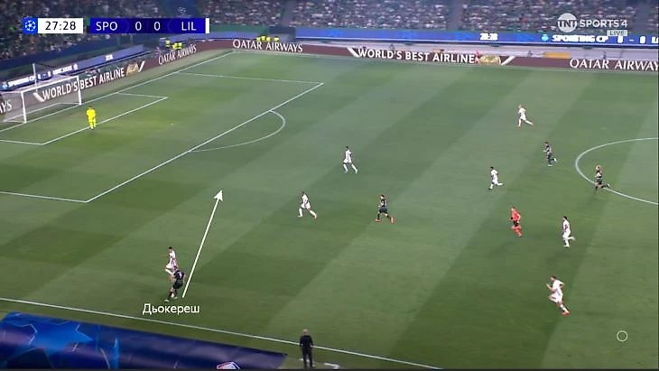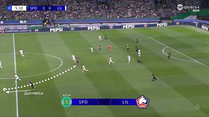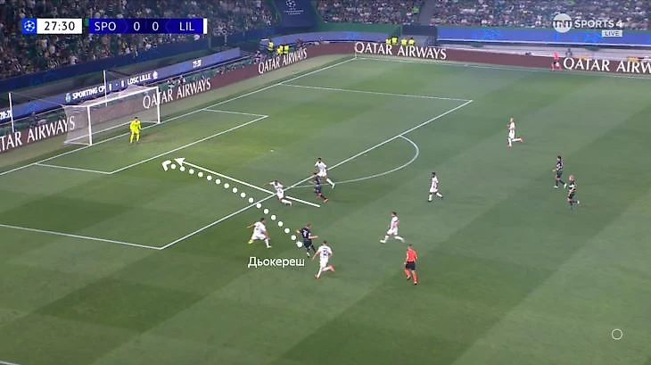 Иногда они сочетаются в одном эпизоде. Вот против «Лилля» «Спортинг» перехватил мяч около штрафной. Уже через несколько секунд Педру Гонсалвеш сделал закидушку на Дьокереша.