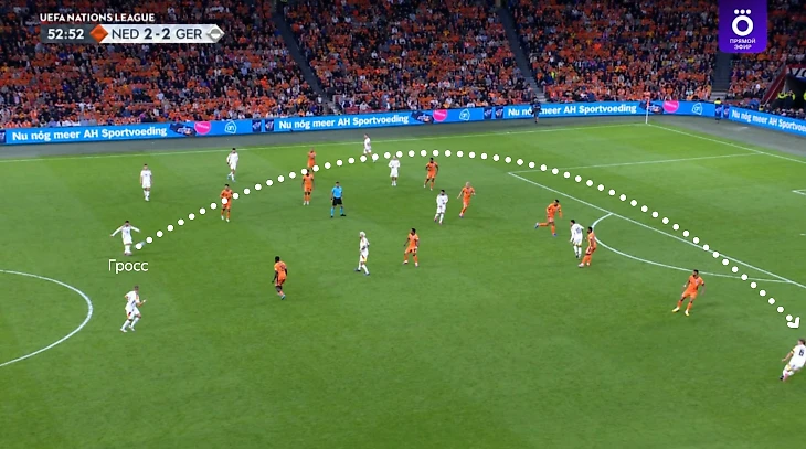 Так против Нидерландов в гостях он контролировал рывок Райана Гравенберха за спину Киммиха, а Гросс рядом опекал Тейани Рейндерса.