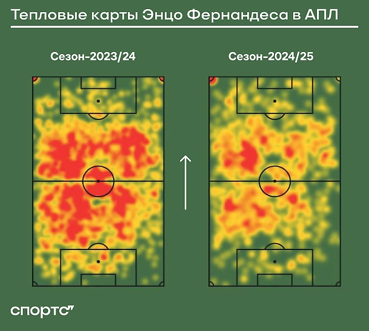 В прошлом сезоне из опорной зоны он реже оказывался около штрафной и не мог дать такой объем полезности из-за другой роли. При Мареске в начале сезона Энцо получил более удобную роль, но не адаптировался к ней и попал под топ-форму Лавии и Кайседо.