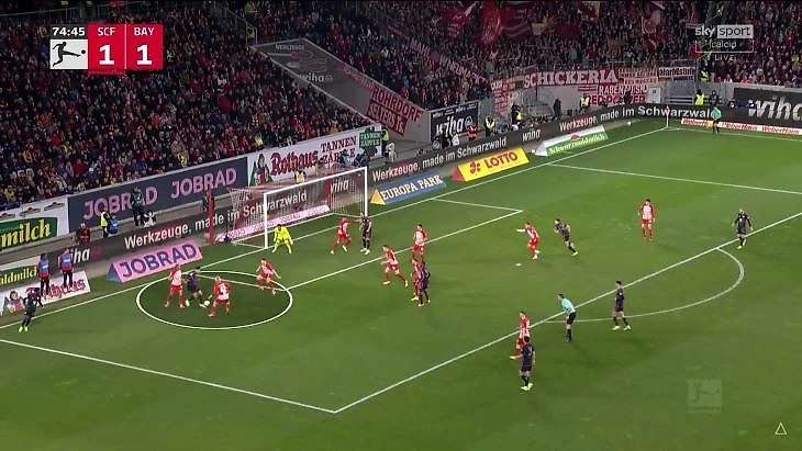 Джака реагирует, а Мусиала неожиданно переносит весь корпус левее и эффектно обыгрывает его. В итоге он заработал опасный штрафной в нескольких метрах от линии.
