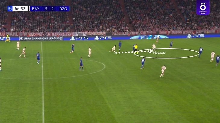 Против «Динамо Загреб» в ЛЧ (9:2) Джамал открылся за спиной полузащиты и имел достаточно свободы вокруг. Благодаря этому Мусиала добрался до штрафной на ведении и вывел на удар Харри Кейна.