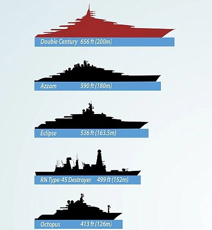 VodaBereg рассказывает о проекте 200-метровой мегаяхты Double Century, которая в скором времени потеснит в рейтинге Azzam и Eclipce Романа Абрамовича.