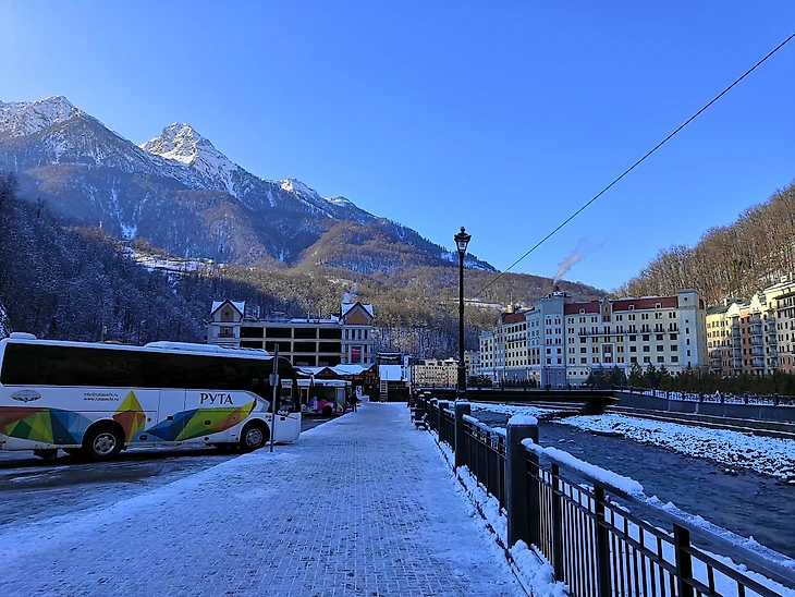 Перед матчем у нас было достаточно времени, поэтому мы взяли "каршеринг" прямо в аэропорту и съездили посетить Красную Поляну.