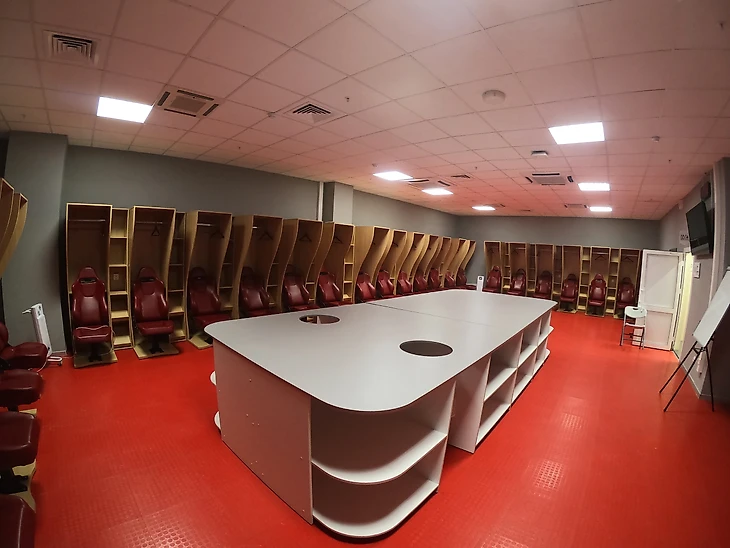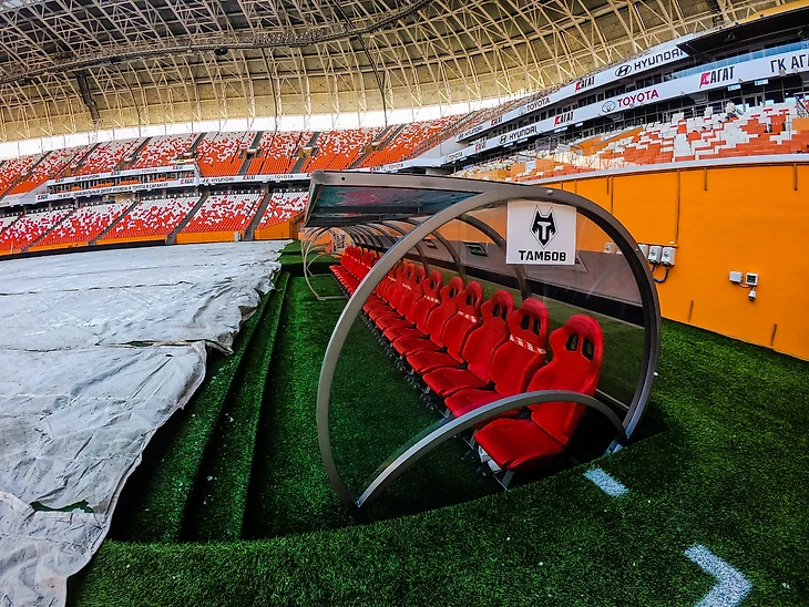 Я прошелся почти по всем трибунам - видимость поля отличная, нет ни одной мертвой зоны. Раздевалки, душевые - достаточно обычные, без излишеств.