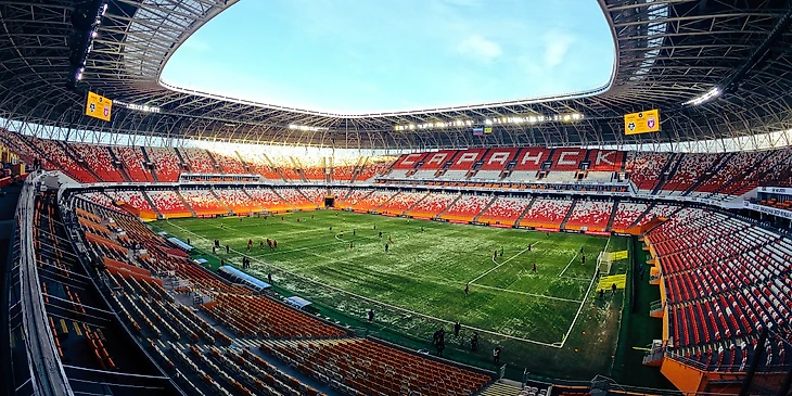 Матч проходил без зрителей, о чем мне в последний момент сообщил сотрудник пресс-службы стадиона, а я чуть было не приобрел билет за 1500р на мошенническом сайте. Кстати, будьте аккуратны. Если вбить в поисковике “Мордовия Арена билеты”, в первых рядах выдаст вполне себе приличный сайт, очень похожий на официальный, но нет - это мошеннический.