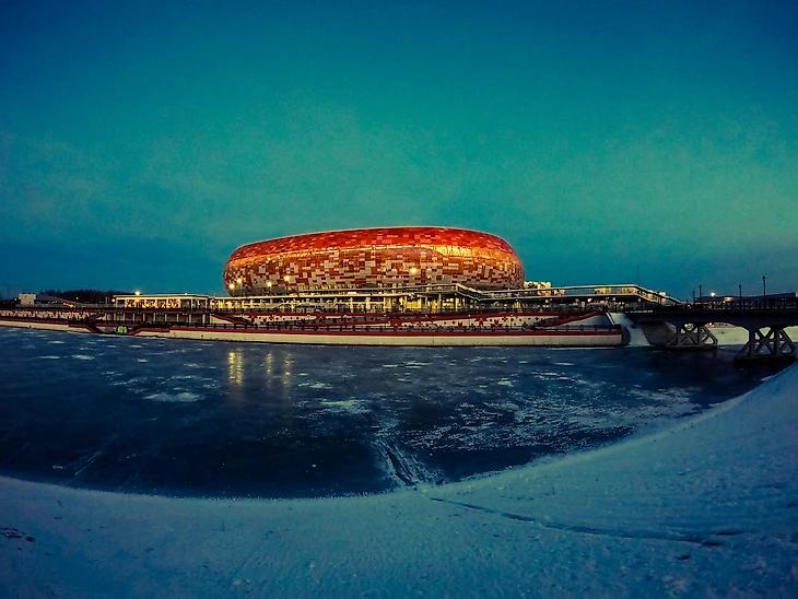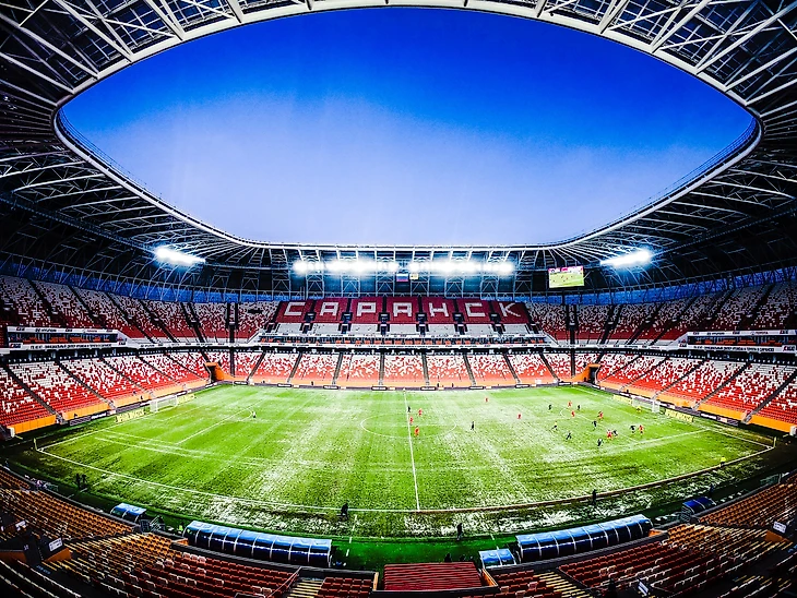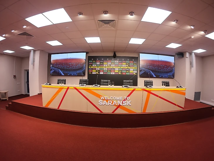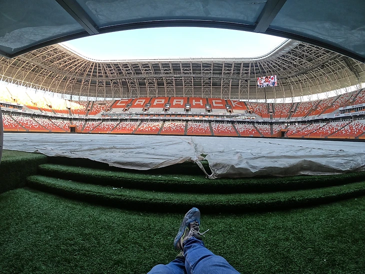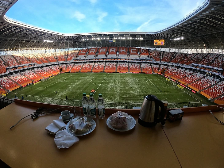 Стадион: такое ощущение, что он абсолютно новый - кресла, столы, лифты, лестницы - все в идеальном состоянии. Чего не скажешь о газоне, но это и без меня отметил Леонид Слуцкий, назвав его состояние как “как будто вновь вернулся на футбол нулевых”. Однако, здесь отмечу, что ни один газон, как мне кажется, не рассчитан на такие морозы, накануне ночью в Саранске было -20.