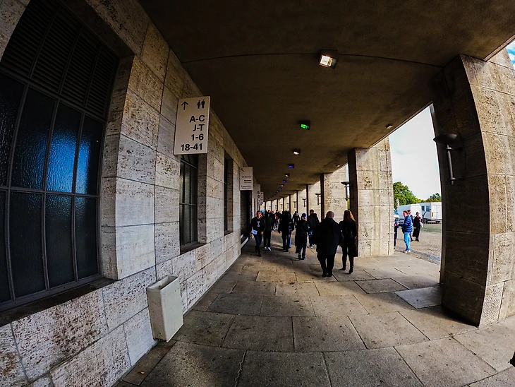 У стадиона есть своя “фишка” которая отличает его от других, что я очень ценю в футбольных стадионах. Стадион накрывает Уникальна разомкнутая навесная кровля. В разрыве кровли находится огромная лестница, на которой стоял олимпийский котел. А прямо за ней виднеется гигантская лужайка - Майфельд (112.000 квадратных метров) Она была создана для гимнастических демонстраций, в частности, ежегодных Первомайских празднований правительством Гитлера.