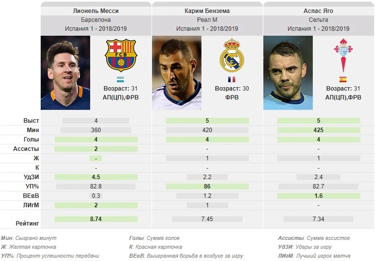 Статистические показатели самых забивающих игроков испанской Ла Лиги за прошедшие пять туров