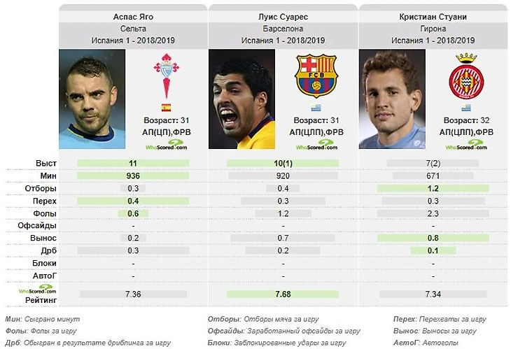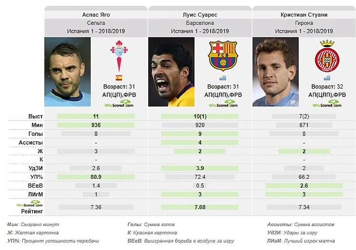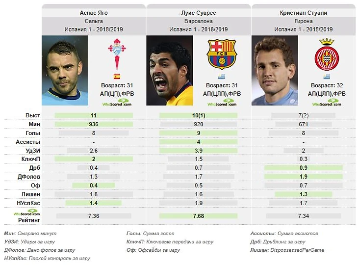 Сравнение лучших бомбардиров Ла Лиги: Аспас, Суарес, Стуани