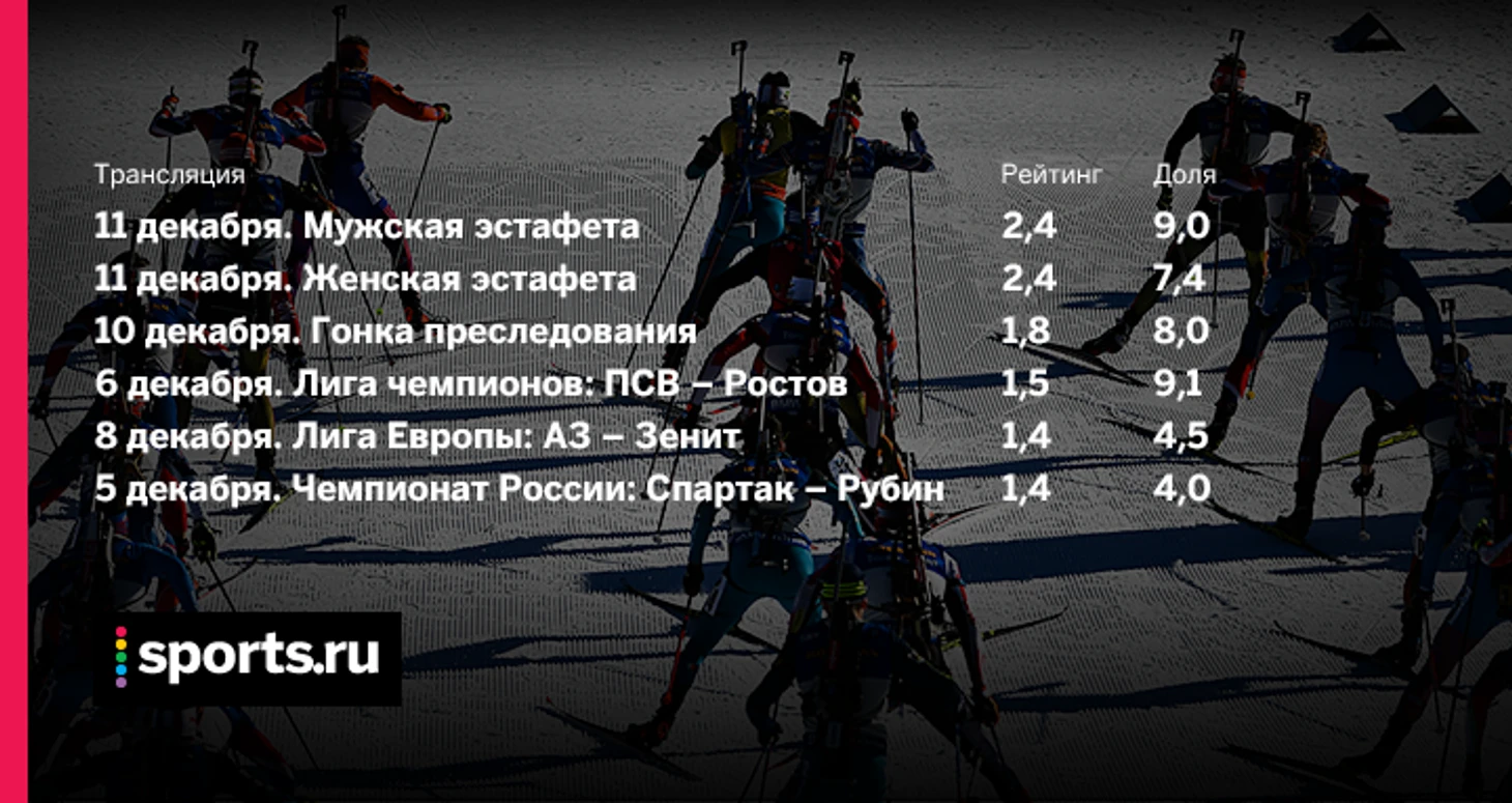 Спустя десять лет биатлон стал, наверное, главным продуктом «Матч ТВ». В декабре 2016-го он оккупировал топ трансляций даже в неделю Лиги чемпионов и последнего тура чемпионата России перед зимней паузой.
