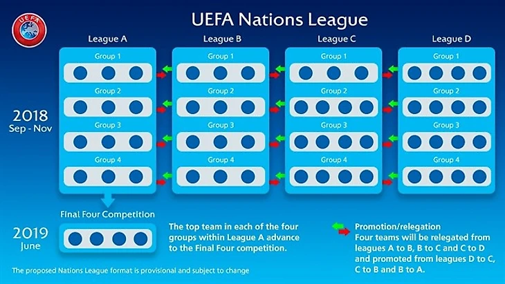 Грубо говоря, Лига наций заменит товарищеские матчи, которые в эпоху глобальных развлечений выглядят совсем тухло и бессмысленно – УЕФА признал это почти прямым текстом («Ассоциации, тренеры, игроки и болельщики считают, что товарищеские матчи не дают адекватного уровня спортивной борьбы»).