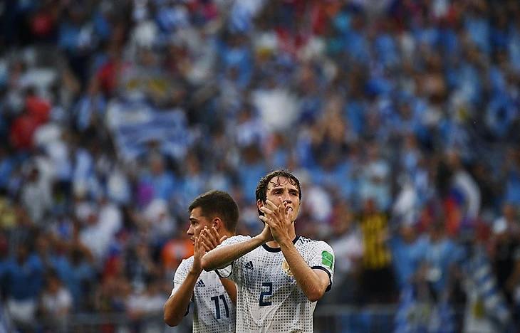 Вместо Головина вышел Миранчук, который не очень понимает других игроков: например, первый гол начался не только с кошмарного паса Газинского назад, а еще и с неловкой паузы, когда Миранчук застрял около штрафной и не двигался в окружении уругвайцев, а Самедов не мог понять, кому отдать мяч, и отдал Газинскому.