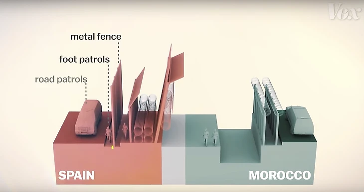 Во-вторых, в Марокко много желающих нелегально попасть в Мелилью, а оттуда по морю – в Испанию. Американское медиа Vox в конце 2017 года сняло короткий документальный фильм о людях, которые собираются на севере Марокко и мечтают прорваться в испанский город. Они собираются в подготовительном лагере на холме: объединяются в большие группы (нужно набрать порядка 100 человек) и обсуждают план действий. Перелезть через многочисленные заборы почти никогда не получается (во-первых, много охраны, во-вторых, просто сложно). Один из анонимных спикеров признался, что пробовал пять раз – и всегда проваливался. Марокканцы отлавливают бегущих и отправляют в другие части страны, подальше от испанского города (некоторых жестоко избивают). Но те в большинстве случаев все равно возвращаются и пытаются снова.