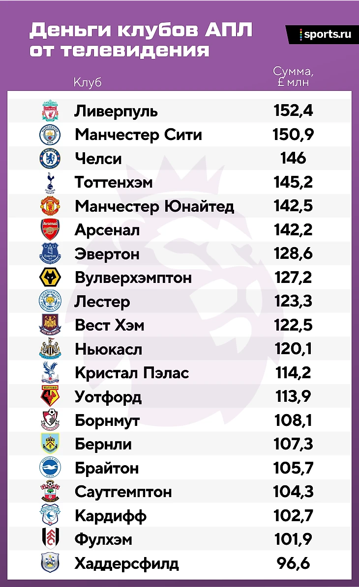 Это самое интересное. Разговоры о величине английского телеконтракта так часты и громки, что давно превратились в навязчивый штамп и стерли конкретные цифры. А зря, помнить об этом полезно.