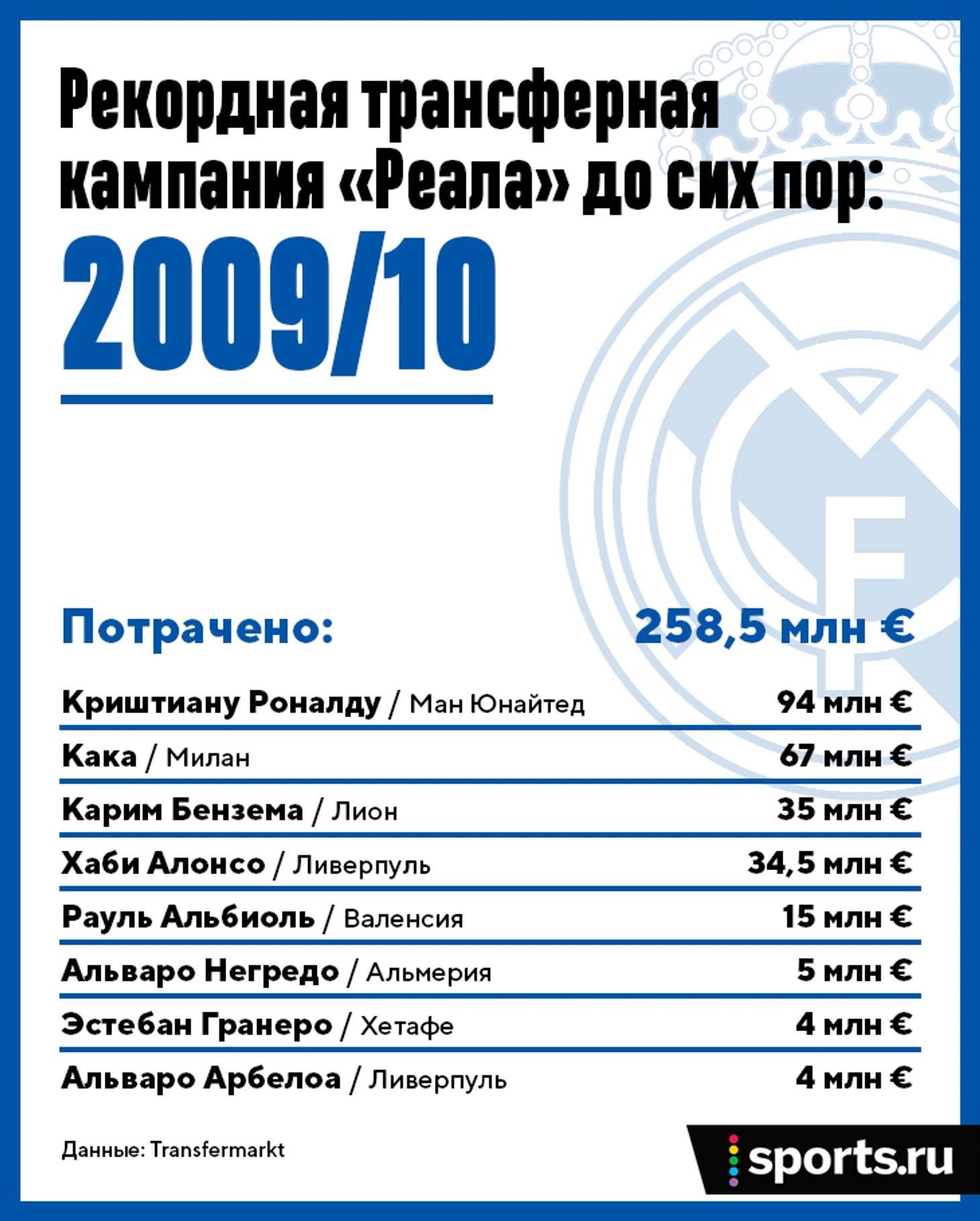 Зидан сам выбирает игроков для новой команды – и все идет к тому, что на усиление потратят на 150 миллионов евро больше, чем летом, когда в Мадрид приехали Криштиану Роналду, Кака, Бензема, Хаби Алонсо и еще несколько звезд.
