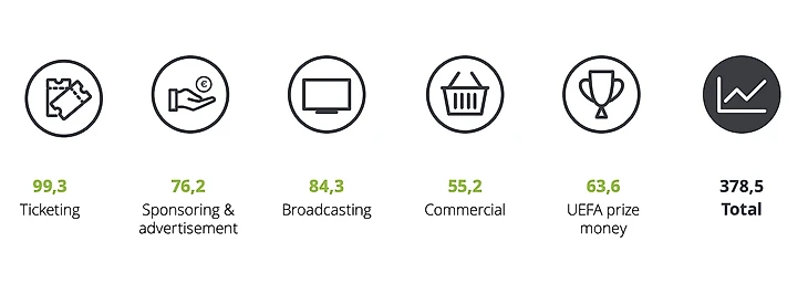 Например, продажи билетов все еще остаются ключевым источником доходов – 99,3 млн евро, 26% всех денег чемпионата. Здесь сказывается и развитие лиги (средняя цена билета в сезоне-2018/19 выросла на 10% до 27,7 евро), и выступления в еврокубках (это дополнительные матчи с дорогими билетами). В Лиге чемпионов и Лиге Европы бельгийские клубы способны получать больше 60 миллионов евро в год – еще в 2016/17 было 48 млн.