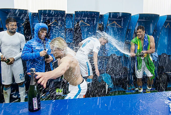 В раздевалке Тимощук снова был главным и первым открыл шампанское. Пока остальные вяло стягивали с себя мокрые футболки, украинец выдернул пробку, взболтал бутылку и облил Анюкова с Кержаковым под крики «Нате, нате, нате!»