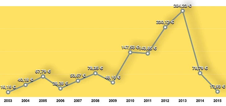 Стабилен разве что «Спартак», который потратил примерно ту же сумму (сейчас – 12,5 миллиона, в 2014-м – 11,5) и два года подряд продает игроков на 12 миллионов евро. При этом команда Аленичева неожиданно потратила на трансферы больше всех в России. Это случилось впервые с лета 2004 года.