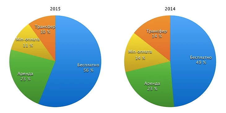 Важно уточнить, что Transfermarkt не указывает стоимость нескольких второстепенных и недорогих сделок (на круговой диаграмме – min-оплата). Чтобы скорректировать все данные, мы брали в расчет оценочную стоимость футболиста на момент перехода. В 2015 году таких сделок было 10, общая сумма – 4,8 миллиона евро. Годом раньше подобных трансферов было 16, сумма – 27,35 миллиона евро.