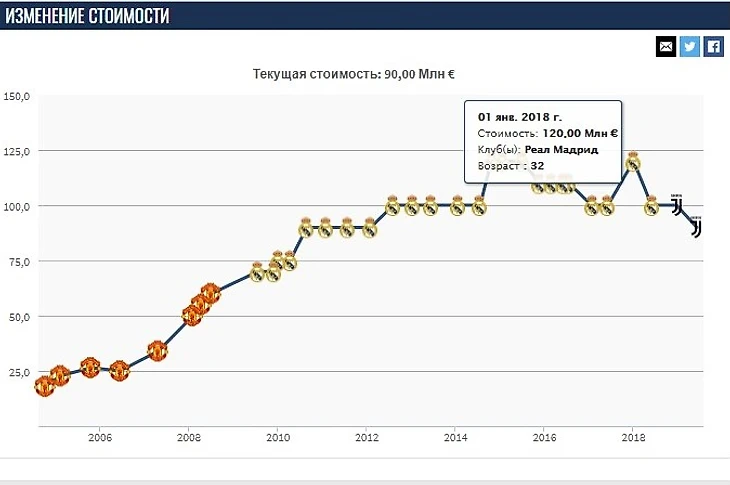 Особое внимание обращают на возраст. Цена на футболиста, которому уже за 30, растет не так сильно, как у молодого и перспективного двадцатилетнего парня. По достижению игроком возраста 33 года и больше, по правилам портала, цену на него постепенно снижают (у голкиперов возрастной порог на два года выше). И это при условии того, что футболист продолжает играть на высоком уровне. Аналитики не пощадили даже Криштиану Роналду, показатели которого туринские врачи сравнили с показателями 20-летнего игрока. Цена на Криша по достижению 32-летнего возраста упала с 120 млн. евро до 90 млн. евро.