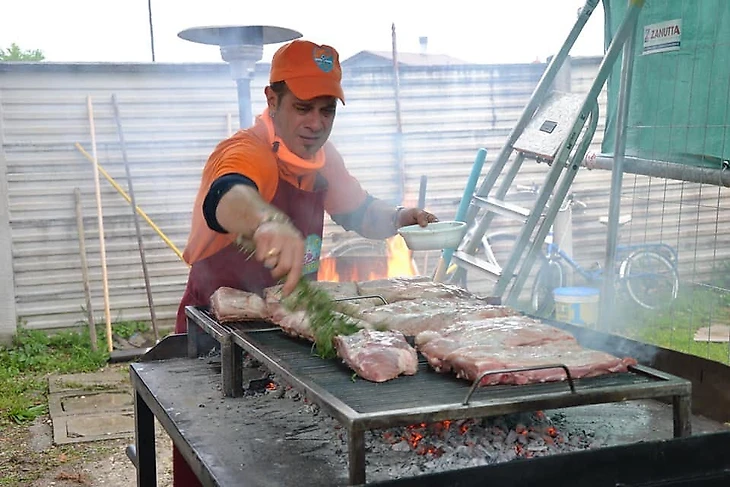 Итак, требуется: ягнёнок, молодой барашек или овечка; соль. Это всё. Никаких приправ. Овечек здесь пасут на горных пастбищах, зачем такому мясу приправы? Из оборудования нужны очаг, вертел и привод, который будет вертел крутить. Ещё понадобится изрядное количество угля. Выпотрошенную тушу ягнёнка тщательно натирают солью внутри и снаружи. Готовить начинают часа за три до матча. Через два часа ягненок всё больше похож на съедобное блюдо. Пахнет одуряюще.