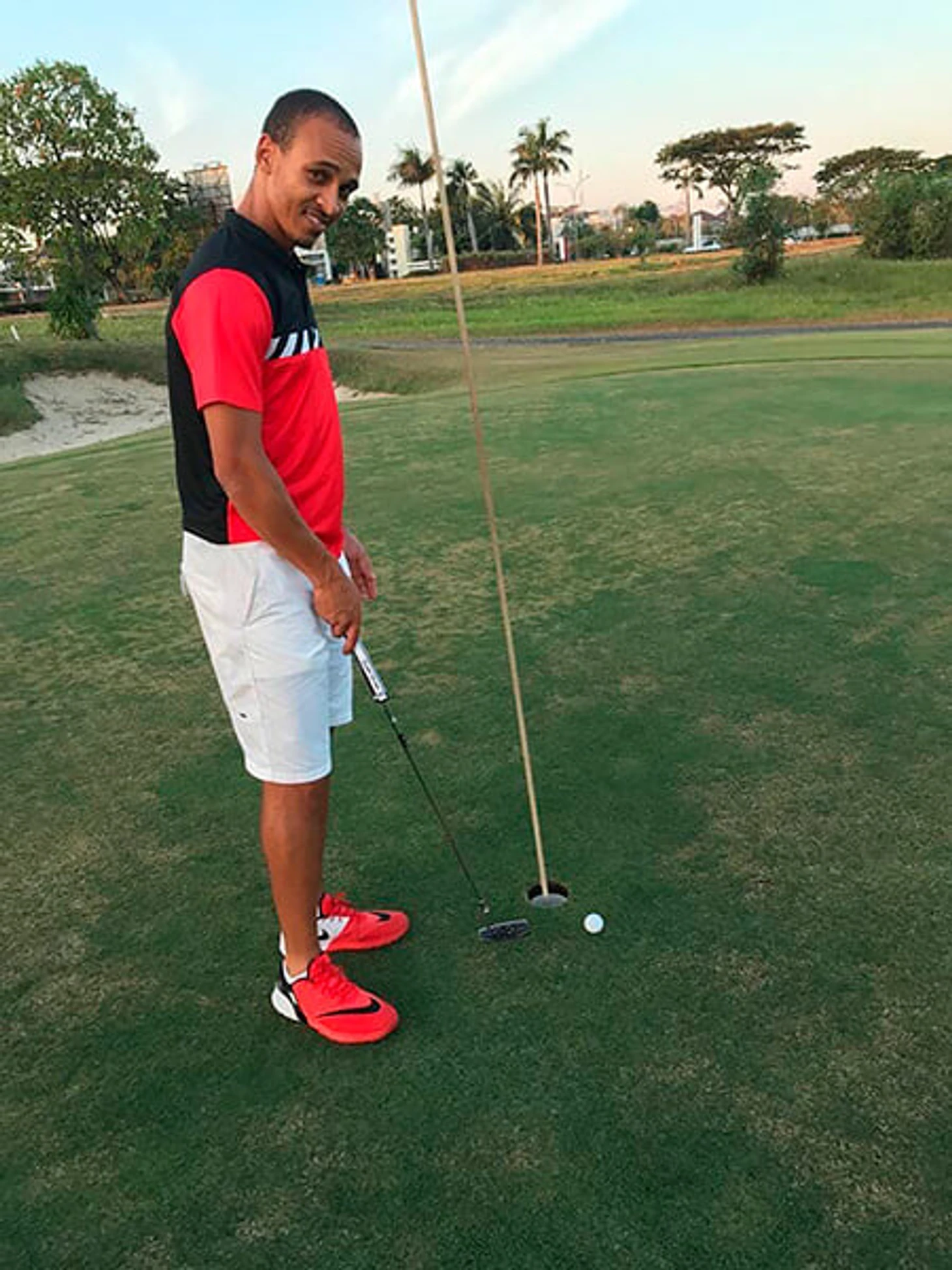 Во время занятия понял, что гольф – игра очень трудная. Сначала довольно средненько бил по мячу, но тренер в первый же день обратил внимание на мой green (грин) – удар, который наносится с участка с самой короткой травой непосредственно вокруг лунки. Он сказал: «У тебя очень хорошо получается грин, ты наверняка где-то играл». На следующий день я купил форму и перчатки. Уже на втором занятии осознал, что гольф – это мое. По возвращении домой первым делом пошел в магазин и купил целый набор клюшек. Так и начался поиск моего профессионального пути.
