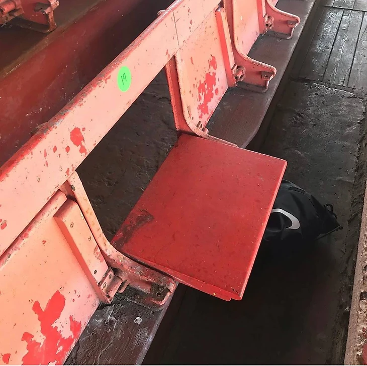 Старине уже 103 года и он изрядно подизносился, но его яркие красно-желтые цвета так и манят туда заглянуть. Стоимость билета 13 фунтов. Главная трибуна на тысячу мест, с деревянными сиденьями и опорными колоннами мешающих просмотру – из-за аварийного состояния больше не используется. Напротив находится еще одна, но уже меньших размеров, занимающая примерно половину длины поля. Там-то фаны и жгут.