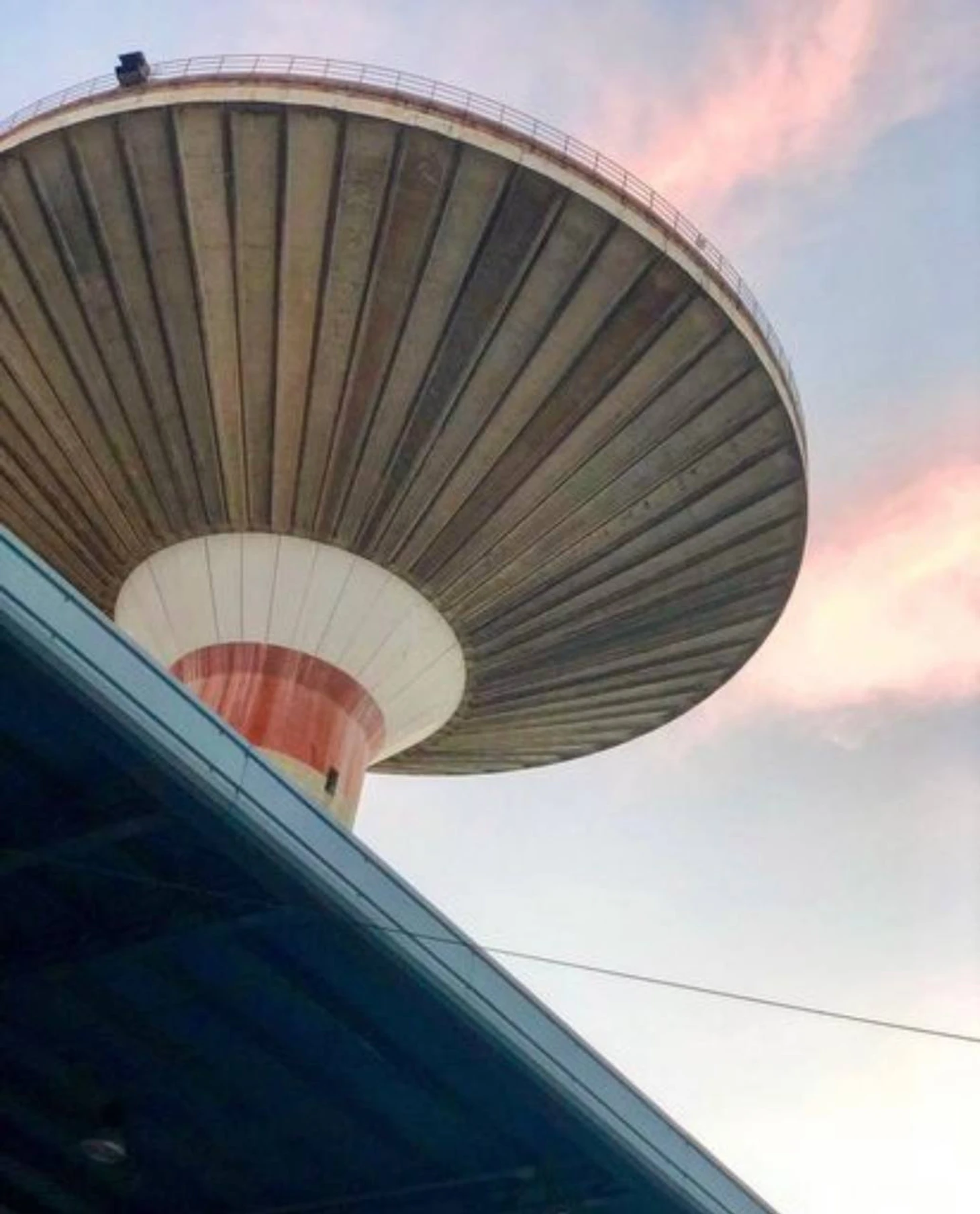 Главная фишка стадиона – водонапорная башня выросшая, как гриб после дождя. Из грустного: раньше там находилась шикарная смотровая площадка откуда можно было заценить красоты города и футбольчик, но сейчас башня находится в запущенном состоянии, от крыши отвалились большие куски бетона, что создает опасность для людей, живущих поблизости.