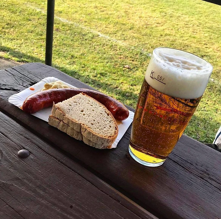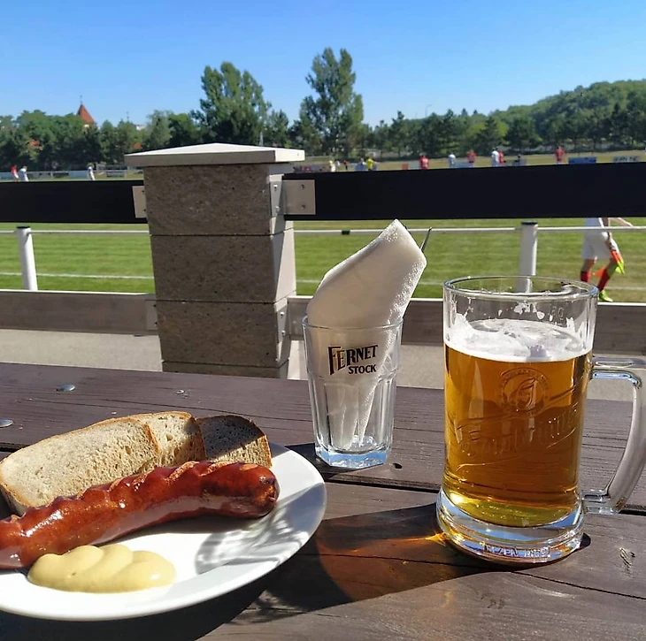 Вход на любительский футбик в Чехии стоит 30 чешских крон (80 рублей), 0,5 бокал «Козела» 24 кроны. Бесспорный король закусок, которые хорошо сочетаются с пивом – темно-коричневая klobása (60 крон) – самая распространенная, ее обычно едят с хреном. Колбаски обжаривают и подают горяченькими на булке или в тарелке с квашеной капустой, кетчупом, горчицей и хлебом.