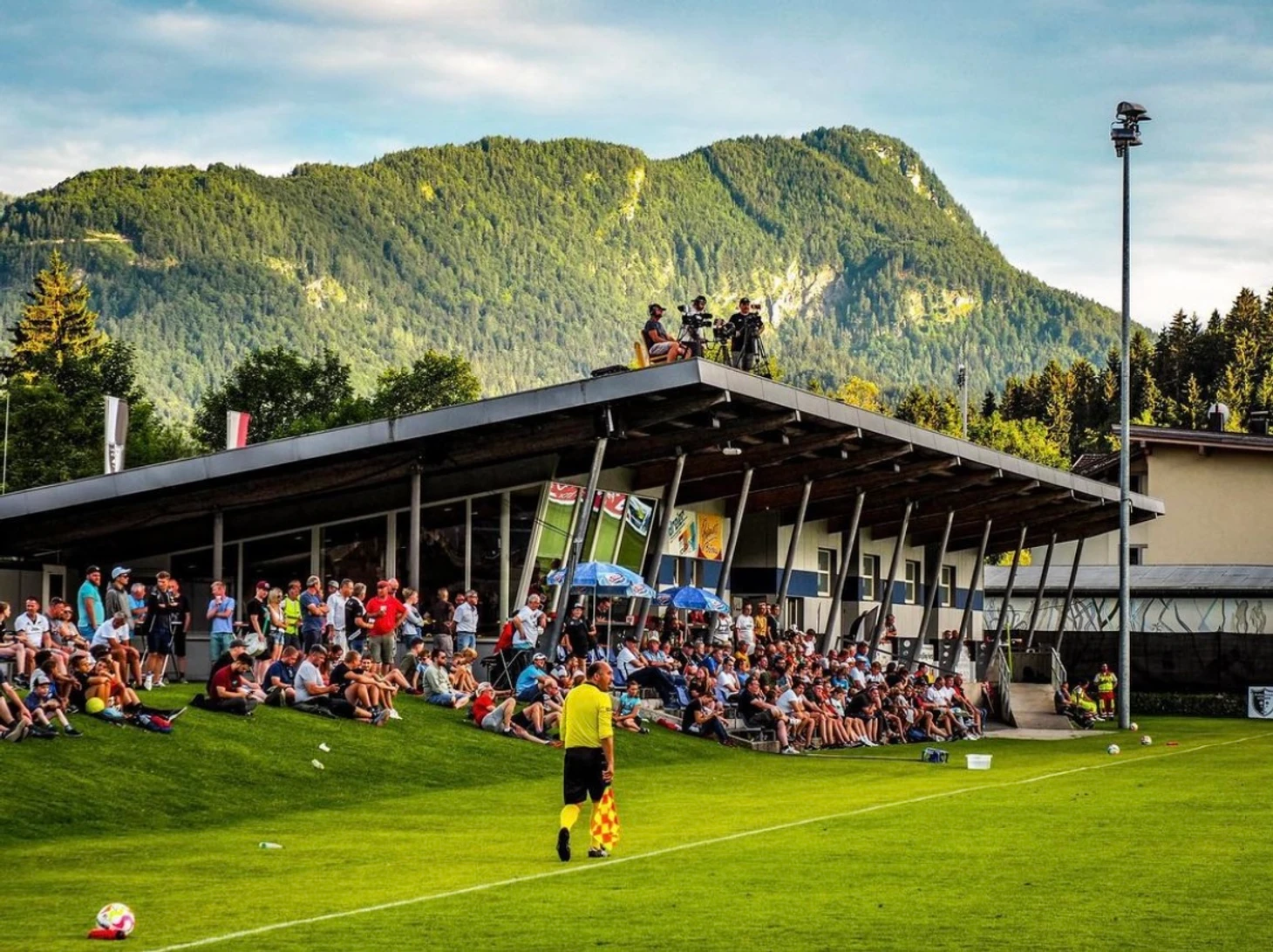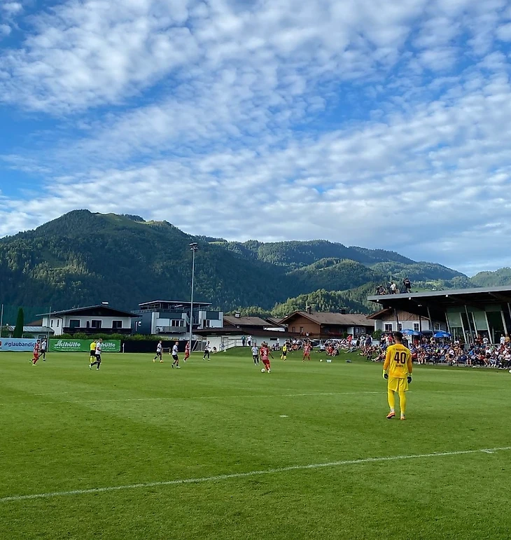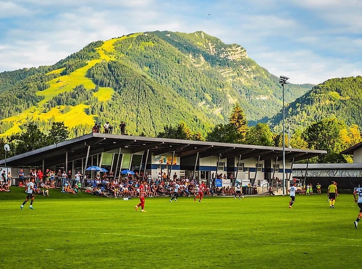 В небольшой австрийской коммуне Кёссен, что в федеративной земле Тироль, есть потрясающий стадиончик с видом на гору Китцбюэль Хорн.