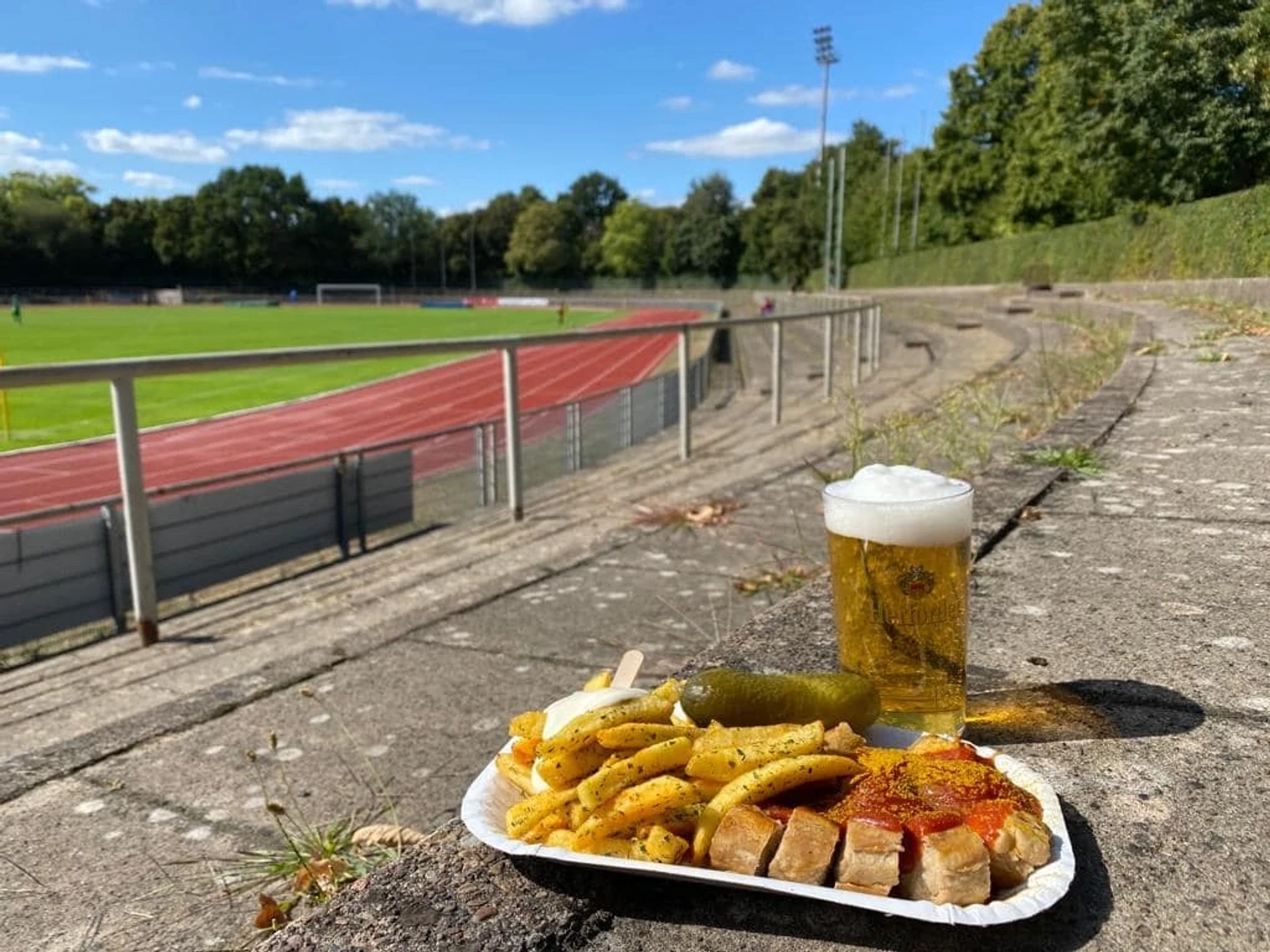 «Спортплац Кёссен» рассчитан на тысячу мест и рубится здесь местный ФК «Кёссен», выступающий в дивизионе 1. Klasse Ost (Д4). Вход на матчи стоит 5 евро, а болел собирается под сотку.