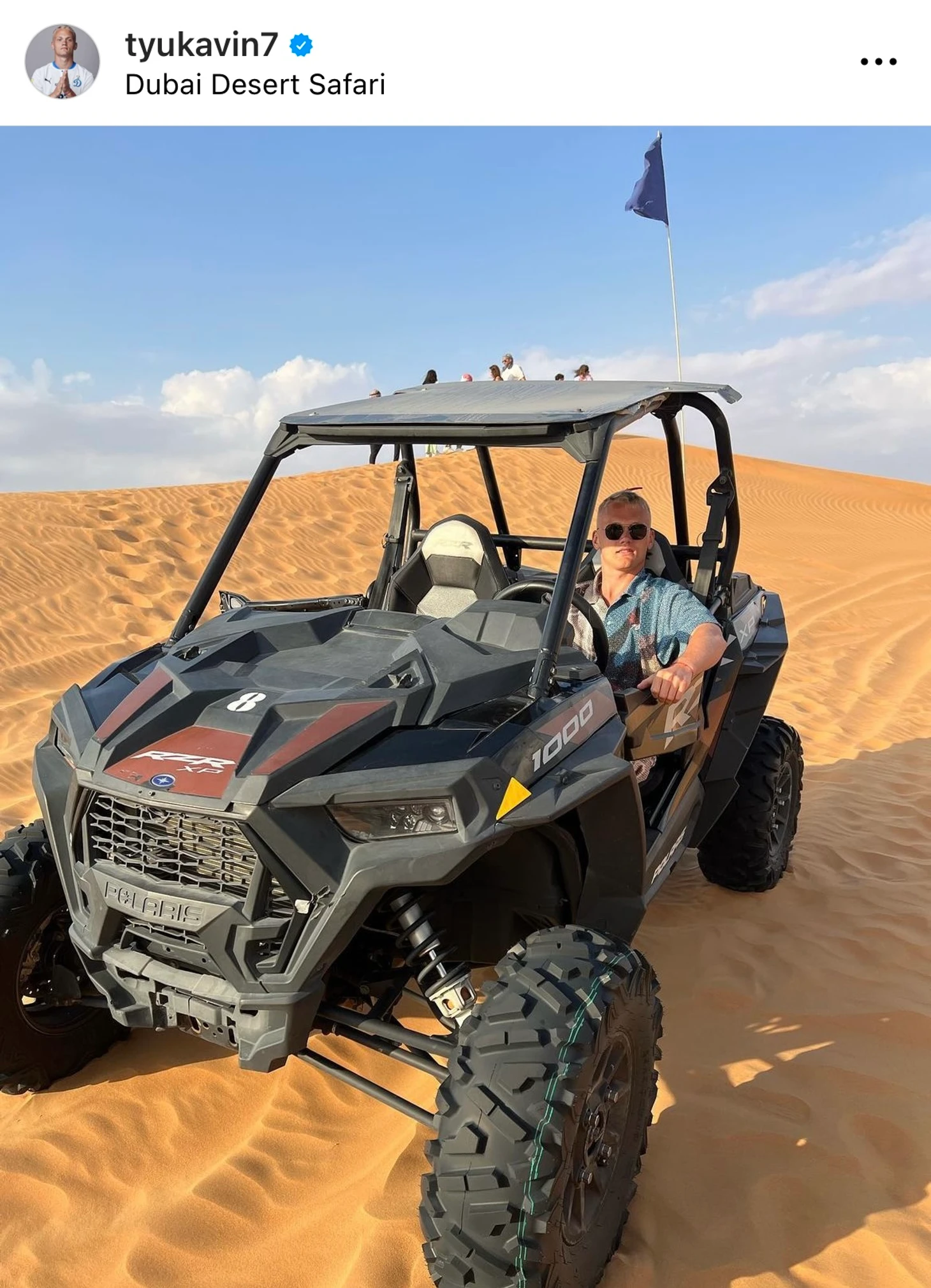 Там же по песчаным барханам на багги рассекал форвард московского «Динамо» Константин Тюкавин.