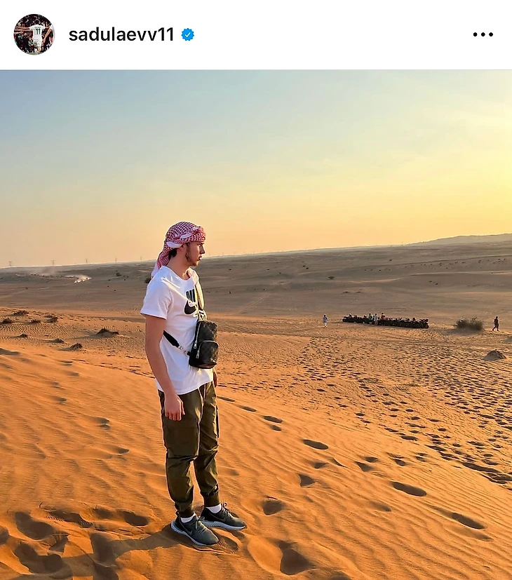 Полузащитник «Ахмата» Лечи Садулаев заворожен песками пустыни Руб-эль-Хали.