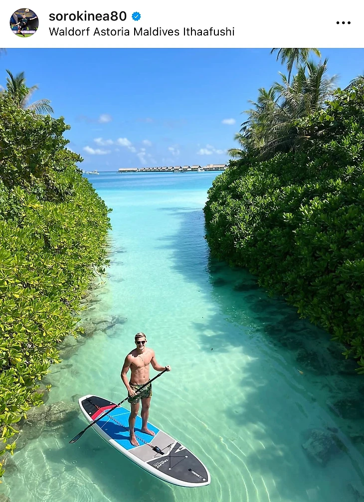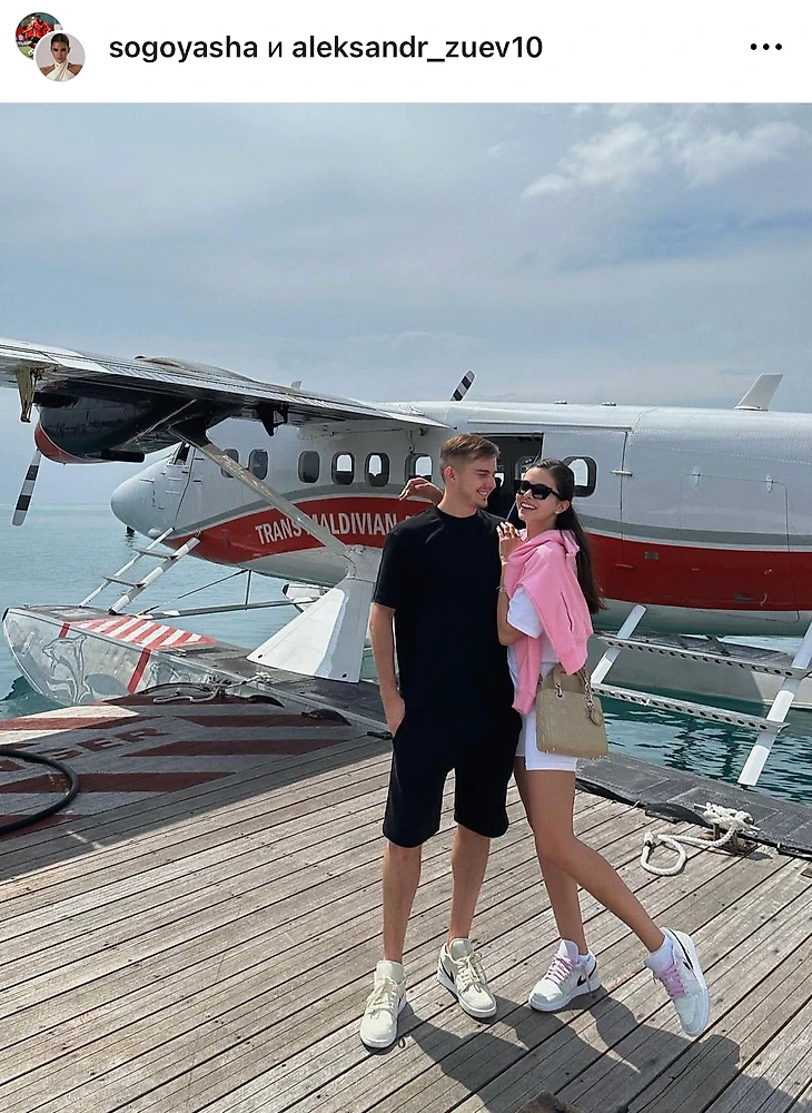 На одном из мальдивских пирсов приземлился борт его одноклубника Александра Зуева, который прилетел вместе с супругой Элиной.