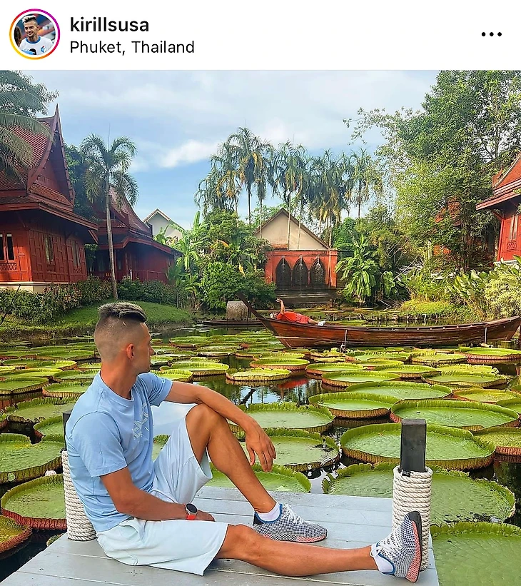 Его партнер по команде Кирилл Суслов на Пхукете зашел в кафе с гигантскими кувшинками. Отличное место для фотосессий и получения эстетического удовольствия.