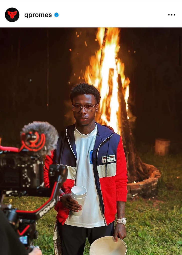 На подходе свежайший клип на песню Gucci, где Квинси стоит на фоне огромного пионерского костра.