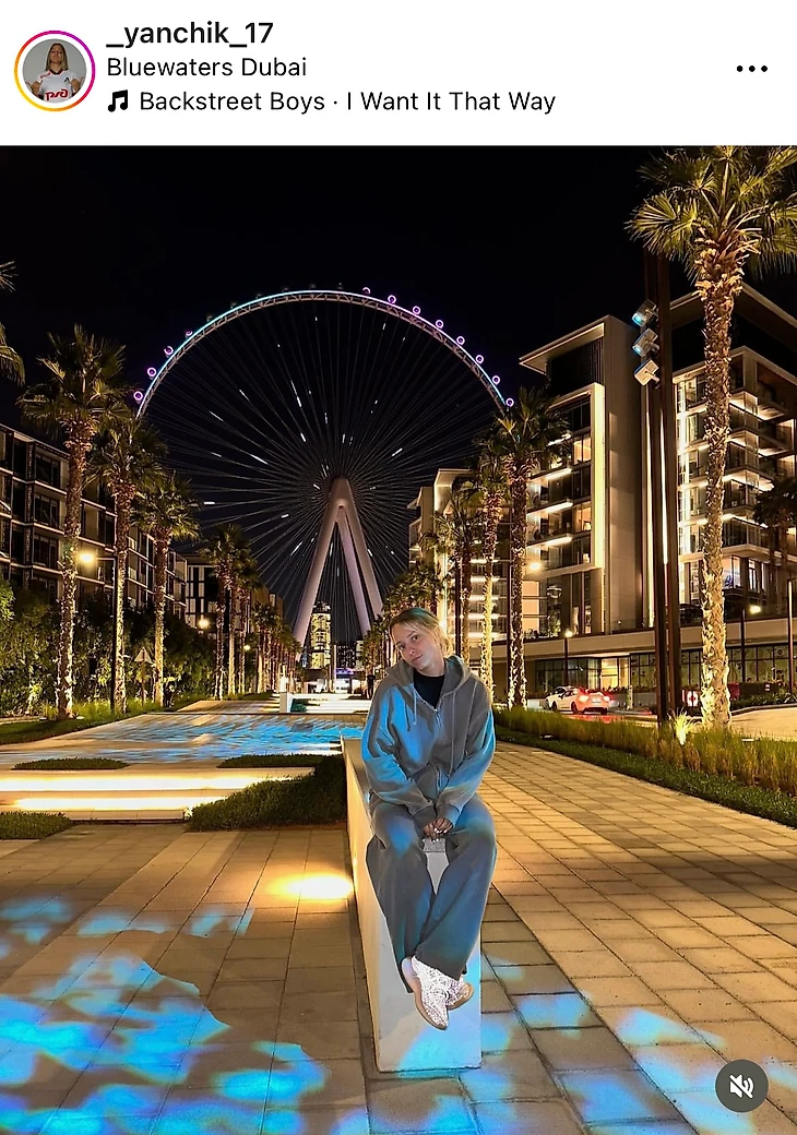 Арендованная «Зенитом» у «Чертаново» полузащитница Алена Андреева позирует на фоне колеса обозрения в Дубае.