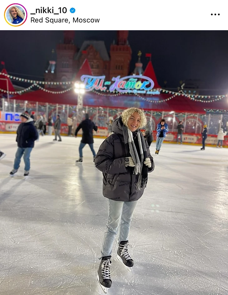 Ее одноклубница Вероника Куропаткина тоже предпочитает активный отдых. Она, в отличие от Лины, решила покататься на коньках в Москве на главной площади страны.