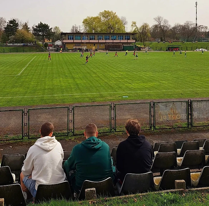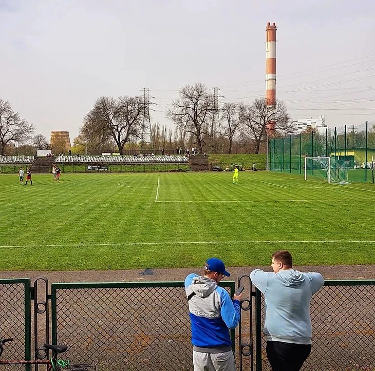За одной из трибун виднеется 200-метровая дымовая труба Забжеской ТЭЦ (самое высокое сооружение в городе).