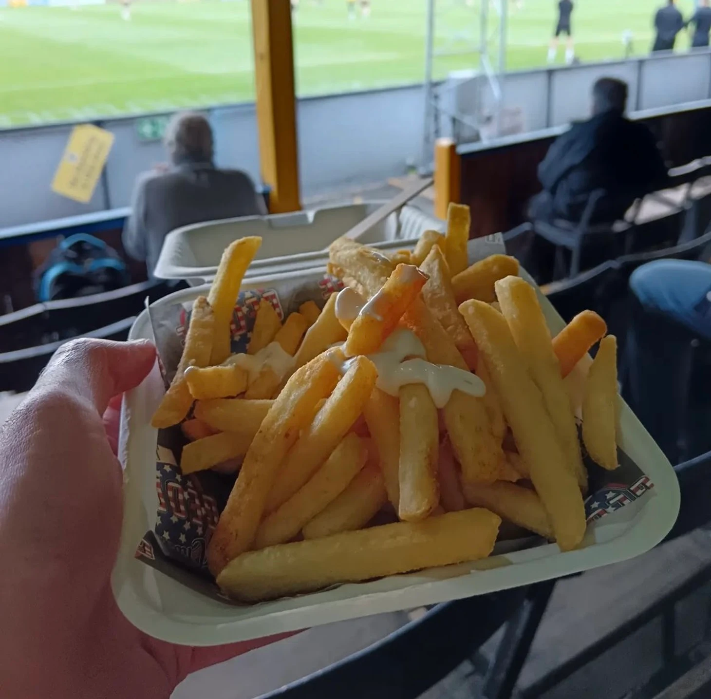 Сооружение описывалось как «забор, заполненный садовыми скамейками и стульями». Еще одним усовершенствованием футбольного поля в то время стала укладка решетчатых досок по периметру поля, на которых могли стоять зрители.