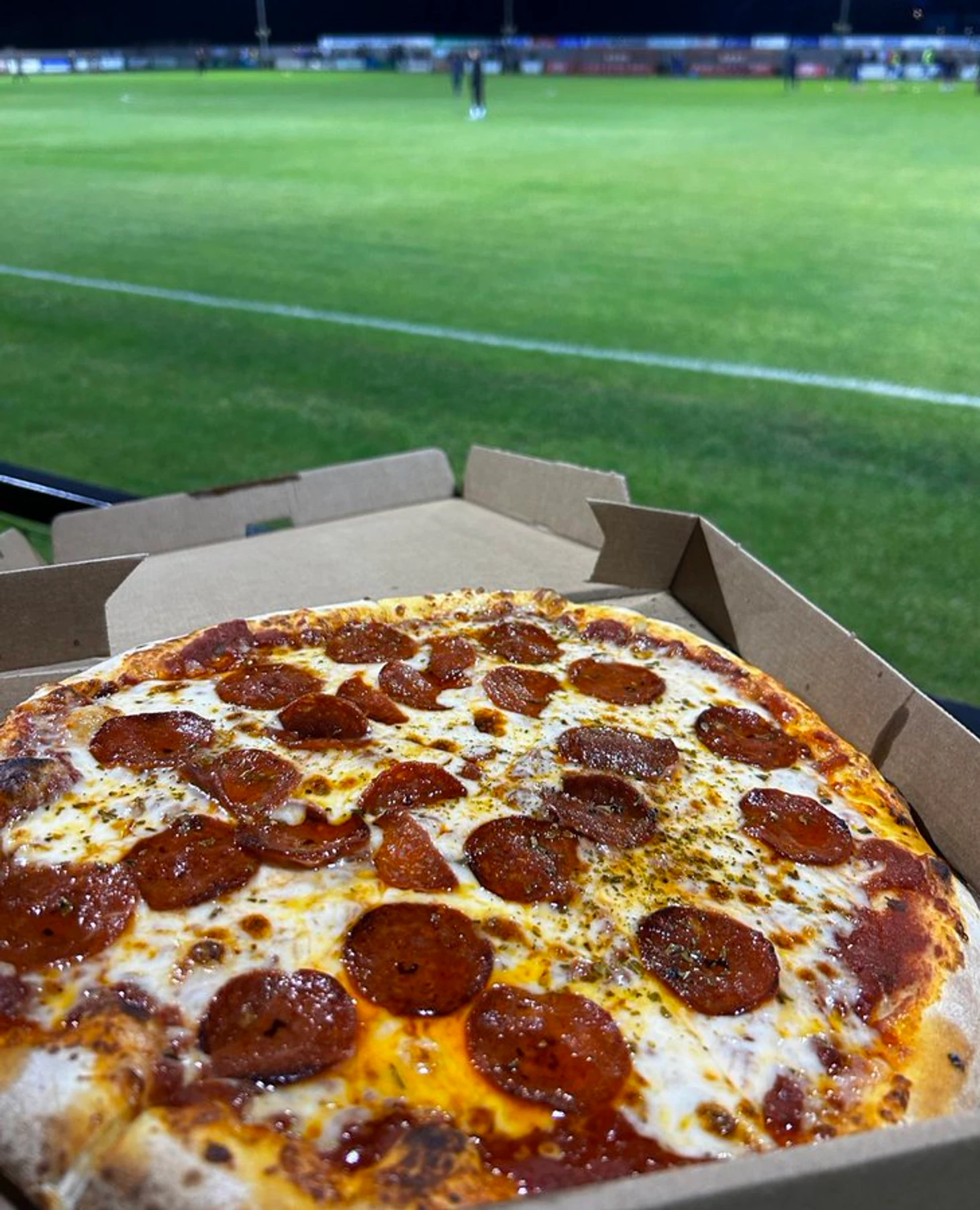 Пару слов об атмосфере: на территории стадиона, как арт-объект стоит давненько поломанный клубный автобус; пивко классическое «Карлсберг»; подкрепиться можно пиццей «Пеперони» за 10,50 фунтов (~1300 рублей).