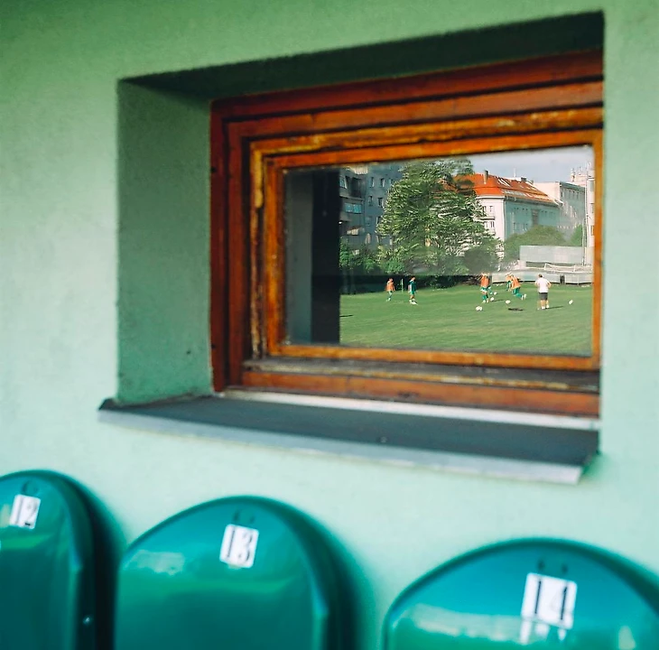 Городские власти сдали футбольному клубу «Блуденц» футбольное поле в Бремшле. Должно быть, в телеграфной конторе в то время не очень понимали, что такое футбол, когда посреди поля они установили телеграфный столб, но это не помешало пацанам собираться.