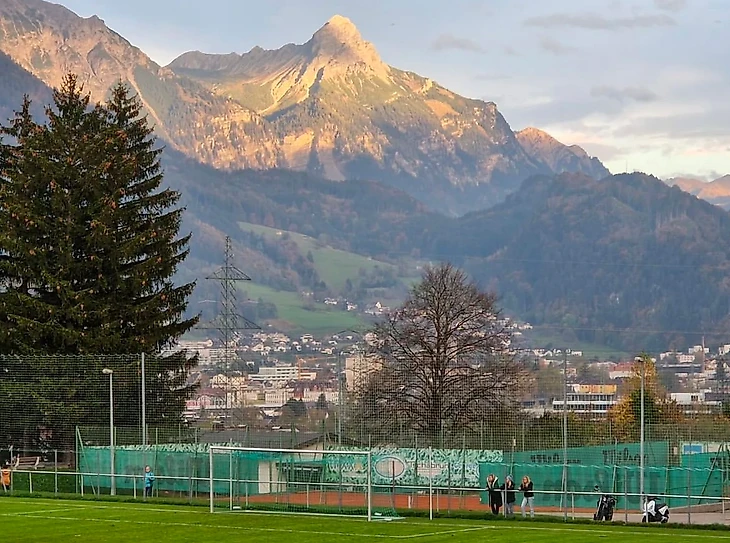 Команда какое-то время поиграла в Нюцидерсе, но местные жители взбунтовались и власти все-таки выделили им нынешнюю спортивную площадку с шикарными видами.