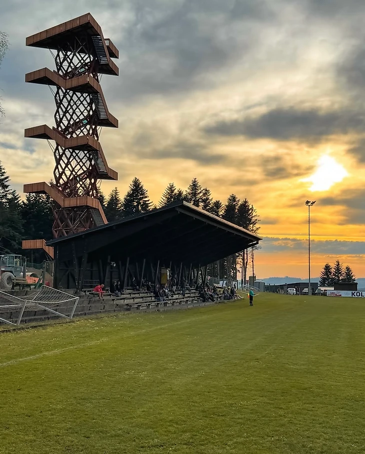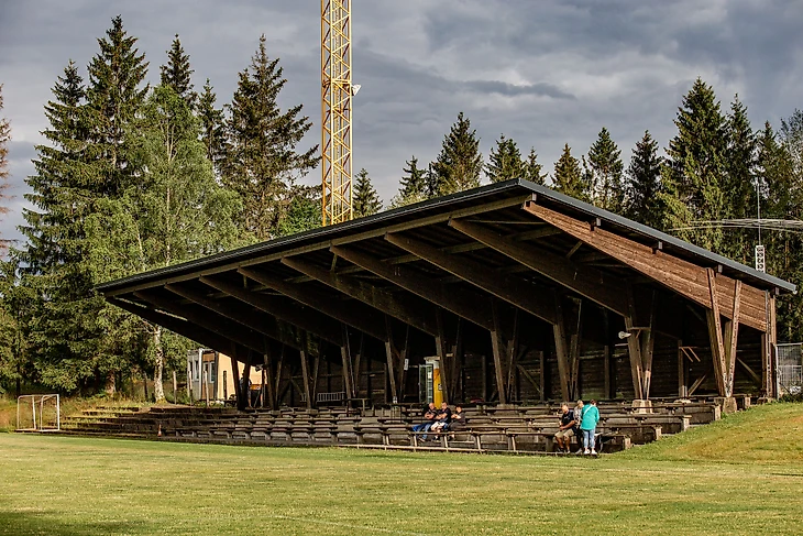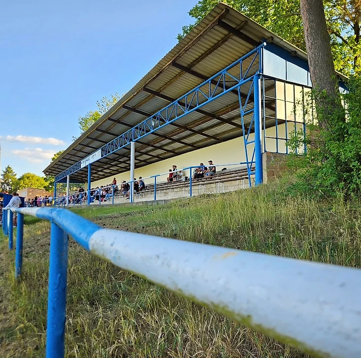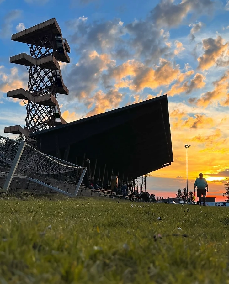 До сих пор в хорошем состоянии сохранилась деревянная трибуна, придающая особый футбольный шарм.