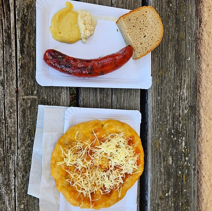 Это венгерские дрожжевые лепешки, обжаренные в масле, а затем смазанные чесночным соусом, сметаной и посыпаны сыром.